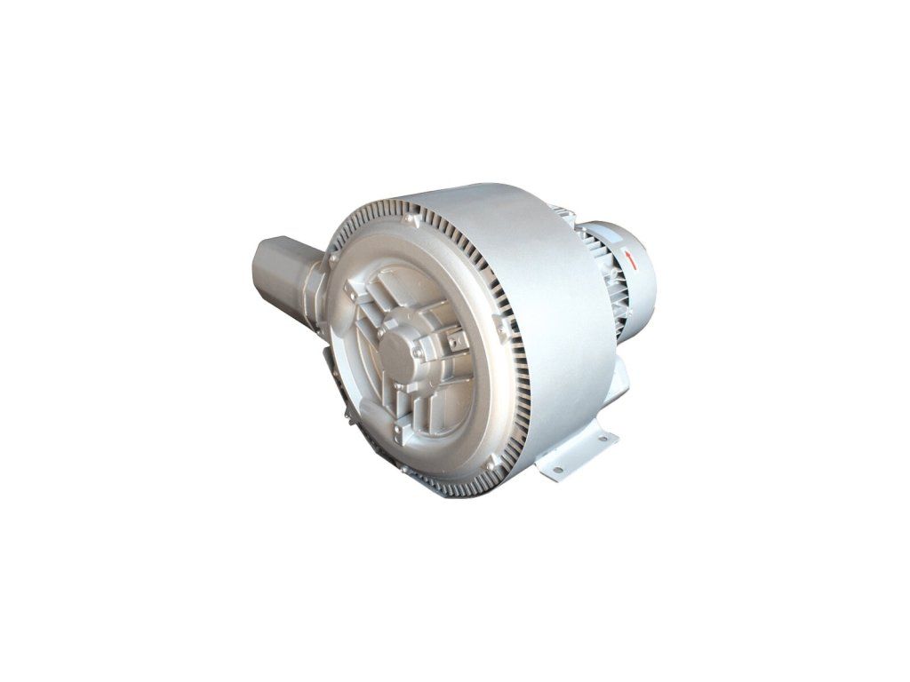 Dvoustupňové dmychadlo s boční trubkou pracuje se dvěma oběžnými koly v sérii, což zajišťuje výrazně vyšší tlak nebo podtlak než jednostupňová dmychadla.